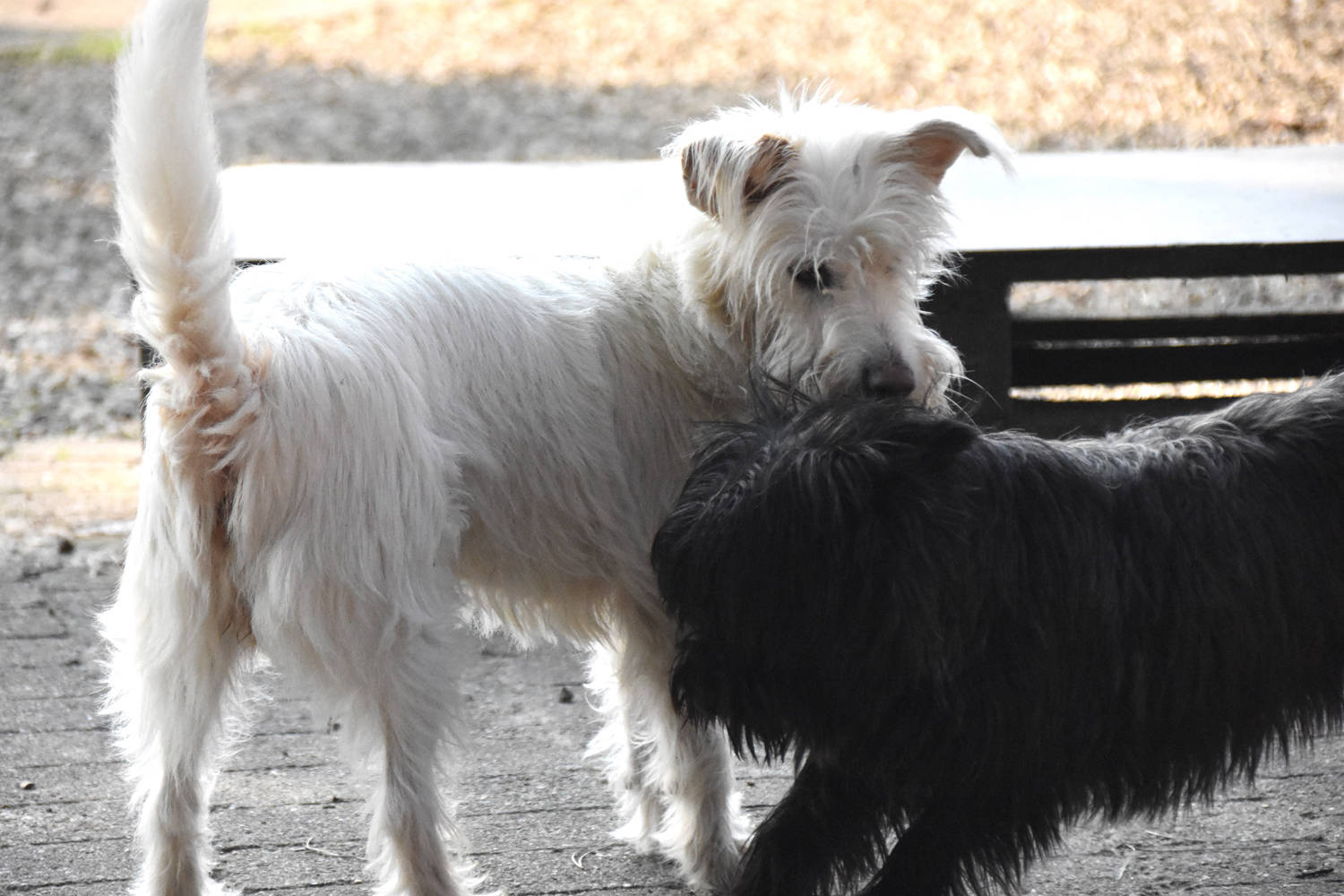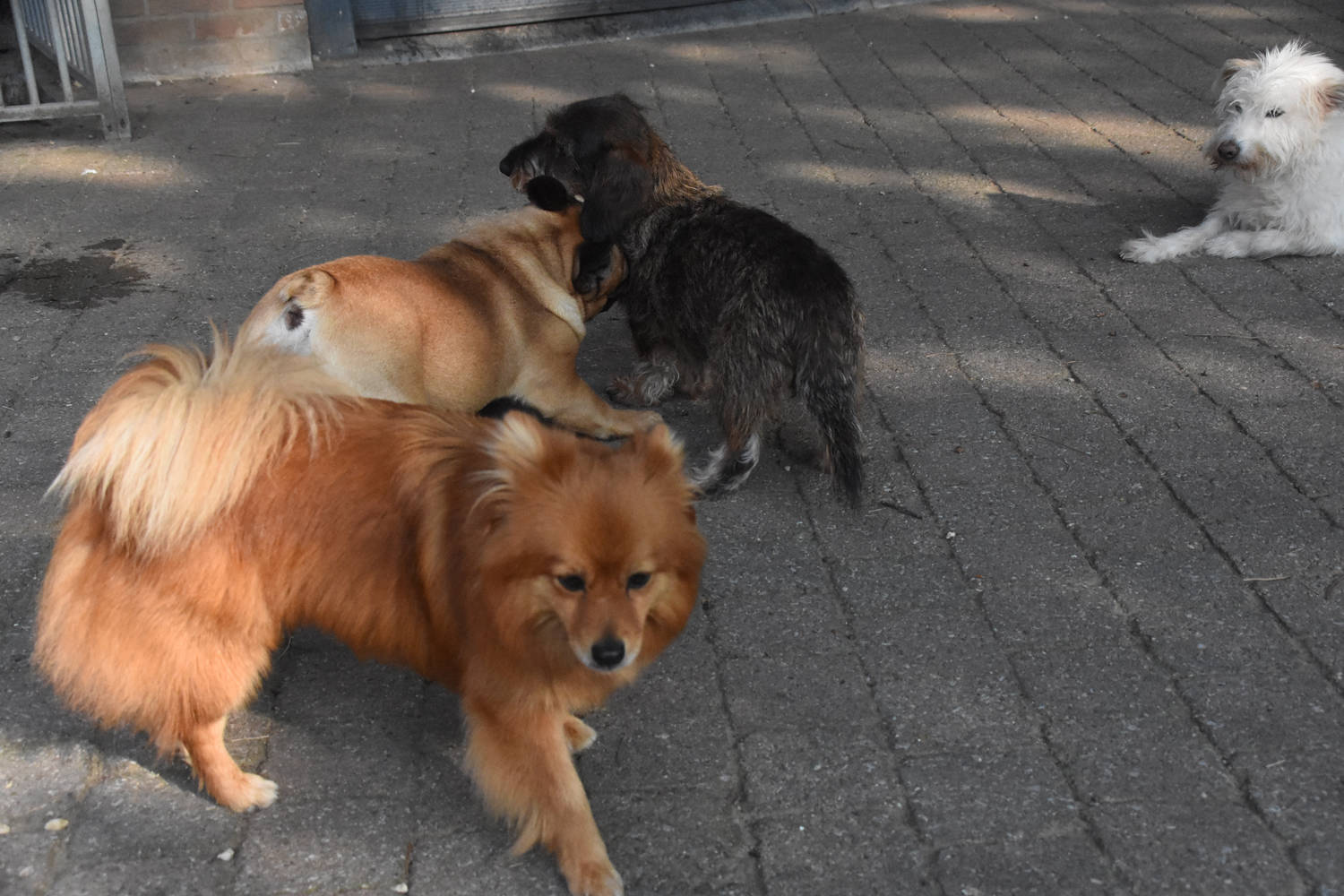 Enkel om te eten worden onze gasten apart gezet. Zo zijn we zeker dat elke hond zijn eigen portie binnen krijgt en dat er ook geen onderlinge ruzie ontstaat.