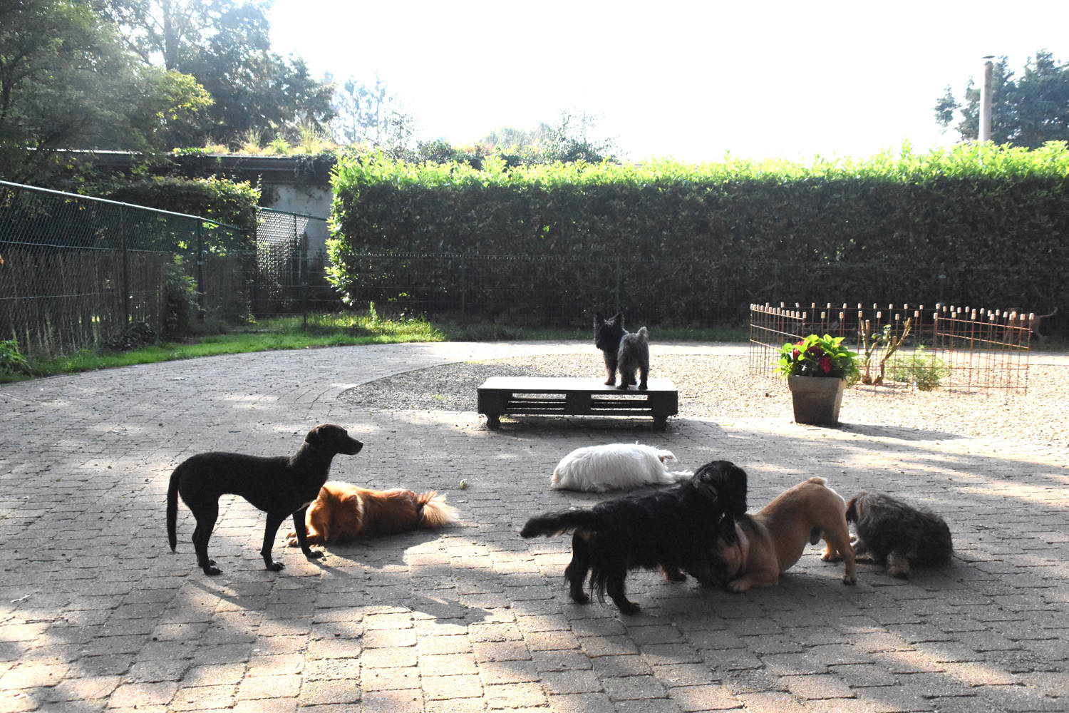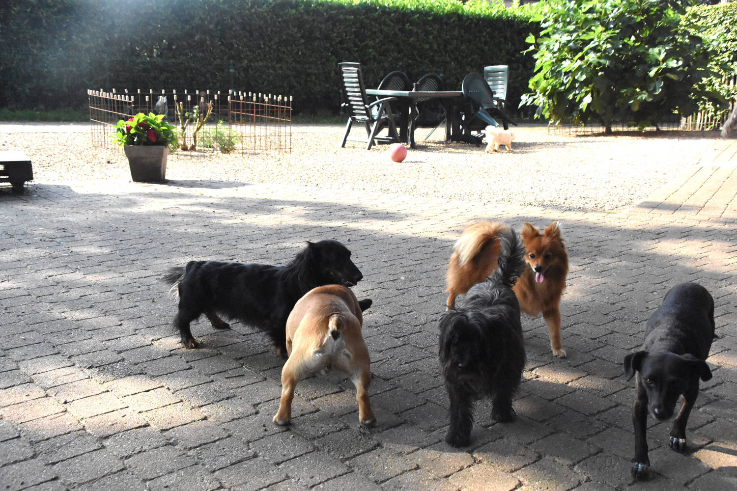 Wij hebben geen kennels of hokken zoals in de meeste dierenpensions. De hondjes die bij ons op vakantie komen verblijven gewoon in huis en hebben ook onze goed omheinde tuin ter beschikking.